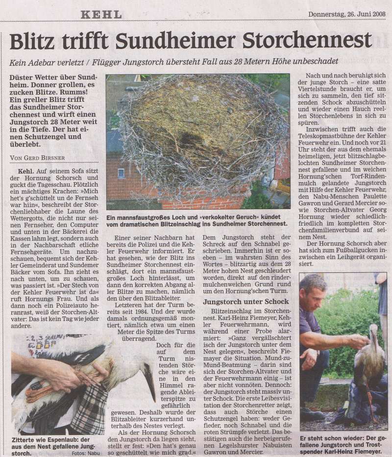 Eher selten, aber doch möglich, ist ein Blitzeinschlag ins Storchennest! | ||||||||||||||||