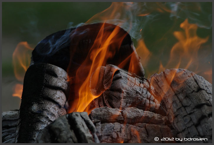 Dann gab es aber auch für uns endlich Hähnchenkeulen - natürlich nicht nur! Ein letzter Blick auf das Lagerfeuer ... und es ging
