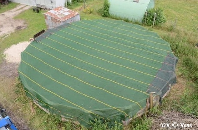 einer wasserdurchlässigen, preisgünstigen Plane (ab 250 EUR erhältlich)