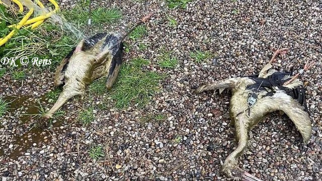 einen weiteren ertrunkenen Storch geborgen hat! |