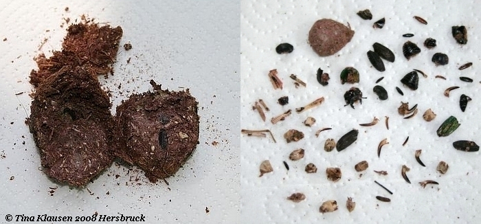 unverdaulichen Teilen ihrer Beute, wie z.B. |