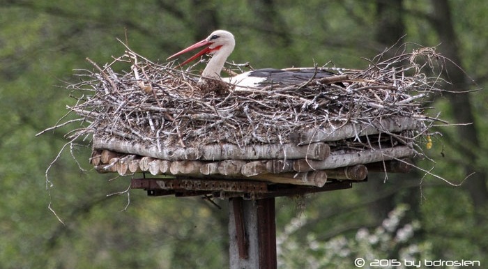 Um den Störchen den Nestbau zu erleichtern, stellt man ihnen Nisthilfen zur Verfügung, | ||||||||||||||||
