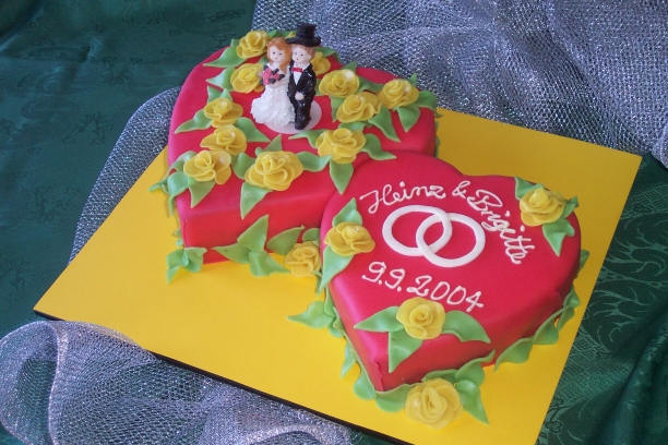 italienischen Zuckermasse ( siehe 3er Herztorte zur Silberhochzeit ) modelliert worden.