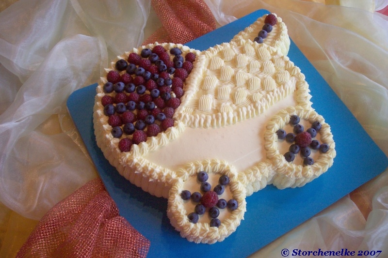 Mit dieser Creme die Kinderwagentorte von außen garnieren.