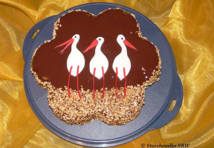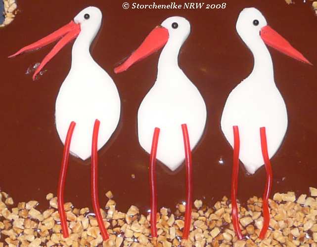 Die Störche werden aus einer fertigen Dekormasse (Zuckermasse) geformt.
