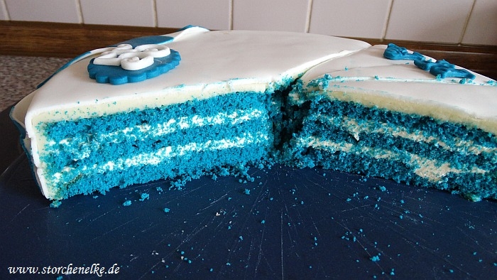 Den Biskuit-Teig habe ich ebenfalls blau eingefärbt, ihn mit