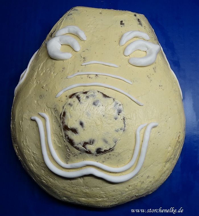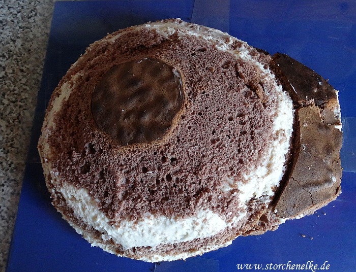 einem Teil der abgeschnittenen Torte den oberen Kopfteil geformt und angelegt.
