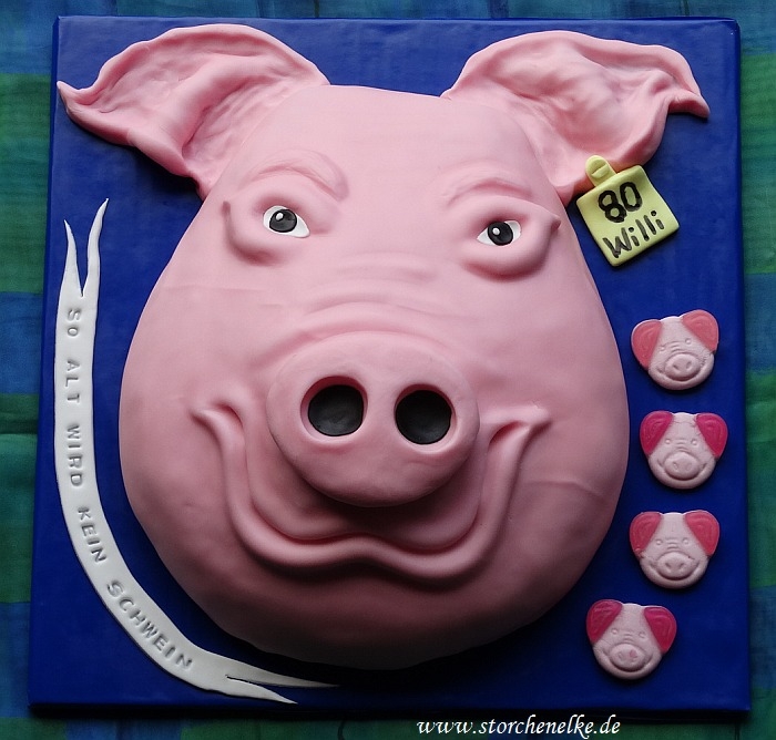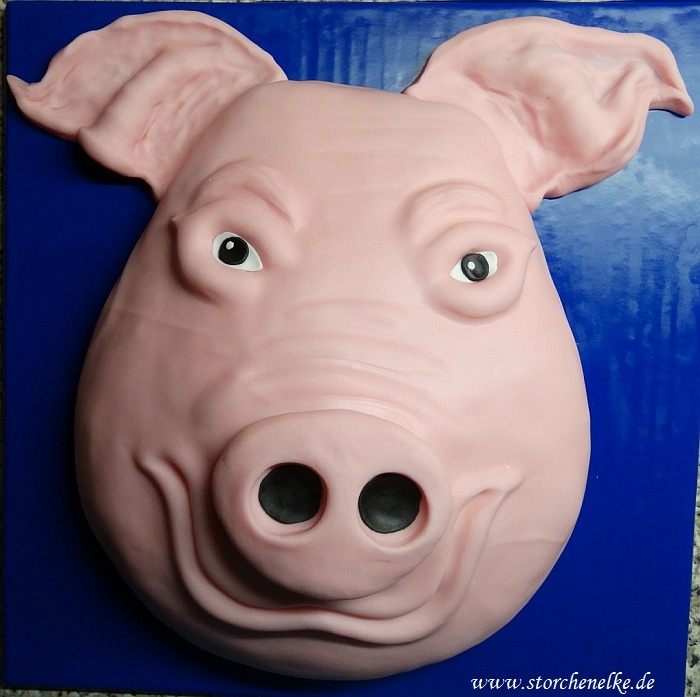 Unterm Fondant des Schweinekopfes befindet sich ein Schokoladen-Biskuit,