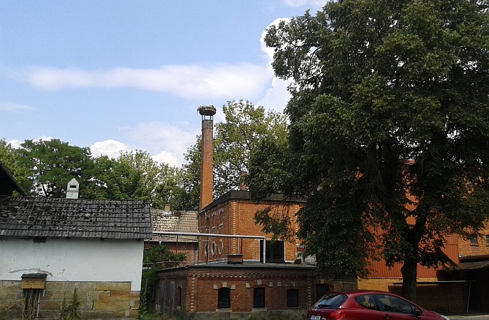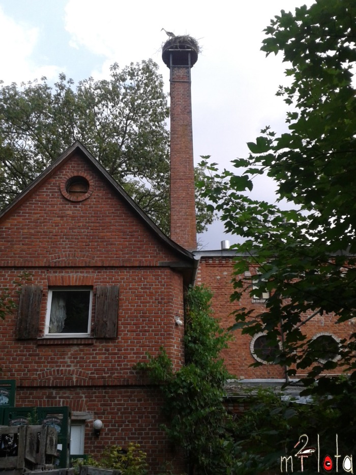 Das Storchennest befindet sich auf dem Schornstein der ehemaligen Brauerei, | ||||||||||||||||