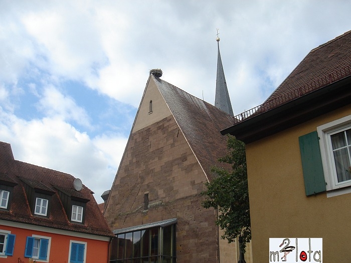 Das Storchennest befindet sich auf dem Dach der Spitalkirche | ||||||||||||||||