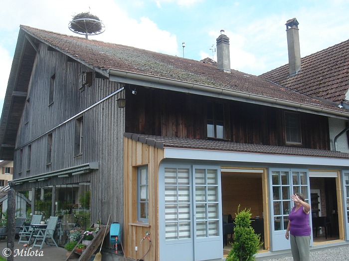 Das Storchennest befindet sich auf dem Dach des Hauses von Mars Bertholet, | ||||||||||||||||
