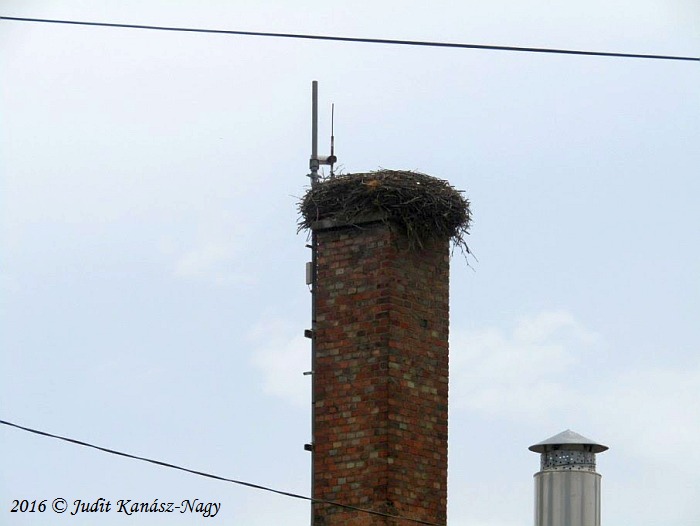 Das Storchennest befindet sich auf dem Schornstein des Kindergartens | ||||||||||||||||