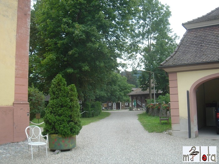 Blick vom Schlosshof Richtung Reithalle mit der Storchenschule. | ||||||||||||||||
