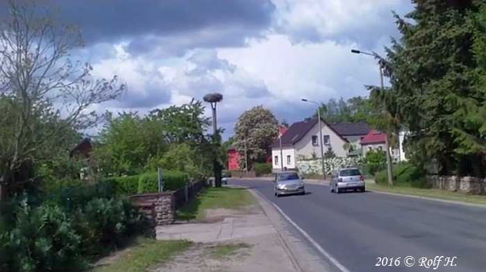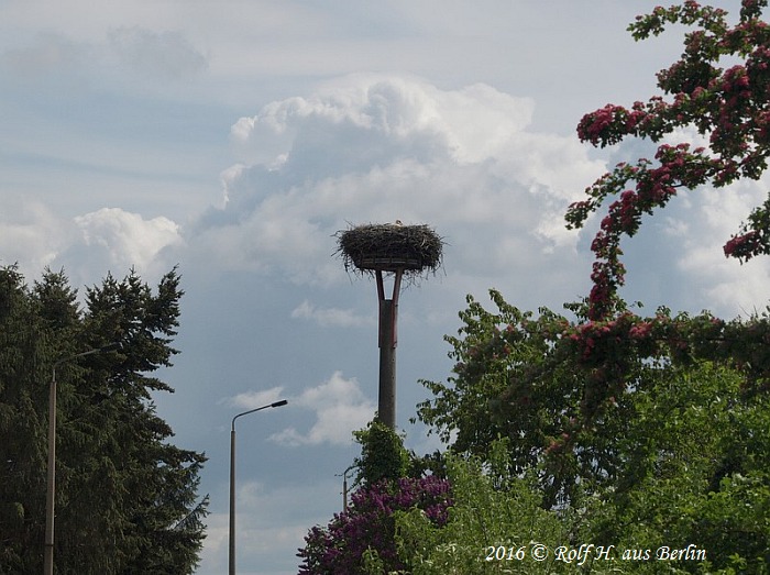 Das Storchennest befindet sich auf einem Strommast | ||||||||||||||||