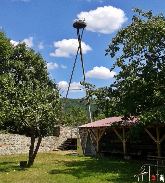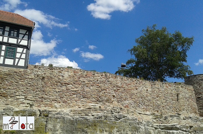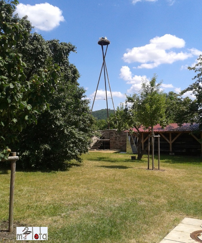 Das Storchennest befindet sich auf einem Balkenständer in der Burganlage | ||||||||||||||||