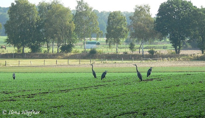 Auch auf den angrenzenden Feldern kann man Großvögel beobachten ... | ||||||||||||||||