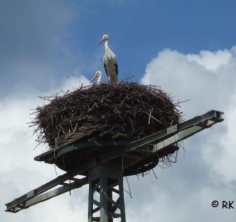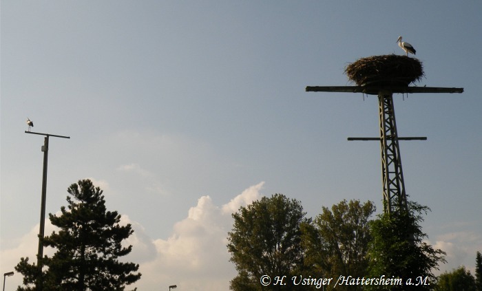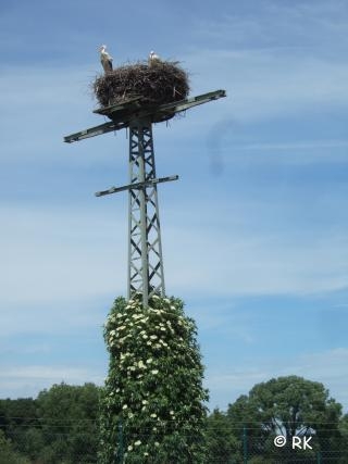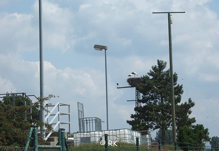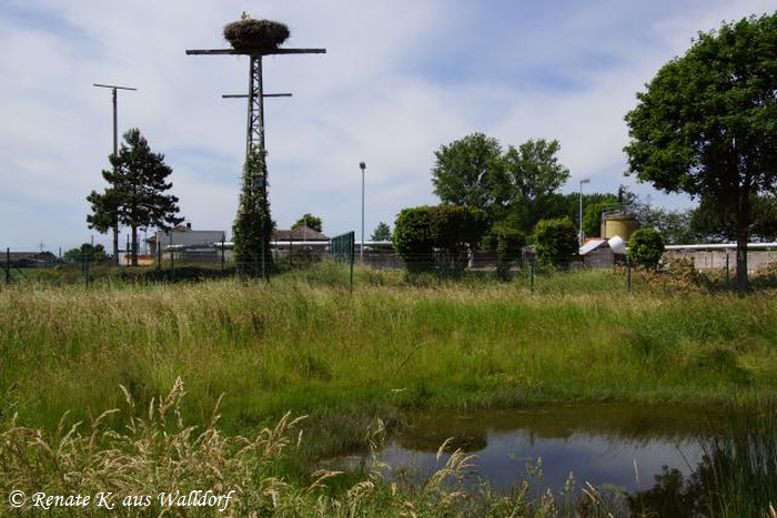Das Storchennest befindet sich auf einem Mast bei der Kläranlage | ||||||||||||||||
