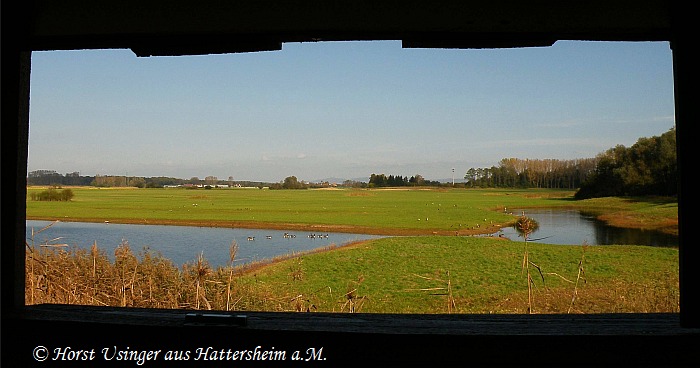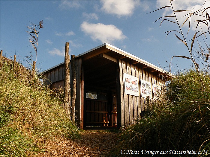 eine NABU-Aussichtshütte mit herrlichem Blick auf ein Feuchtgebiet für Wasservögel. | ||||||||||||||||