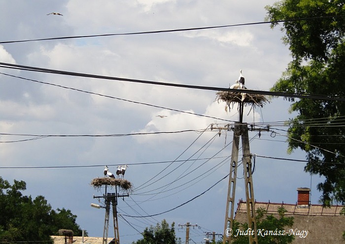 gibt es noch ganz viele Nester auf fast jedem Strommast der Hauptstraße,
