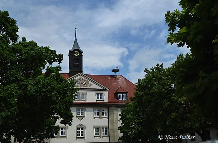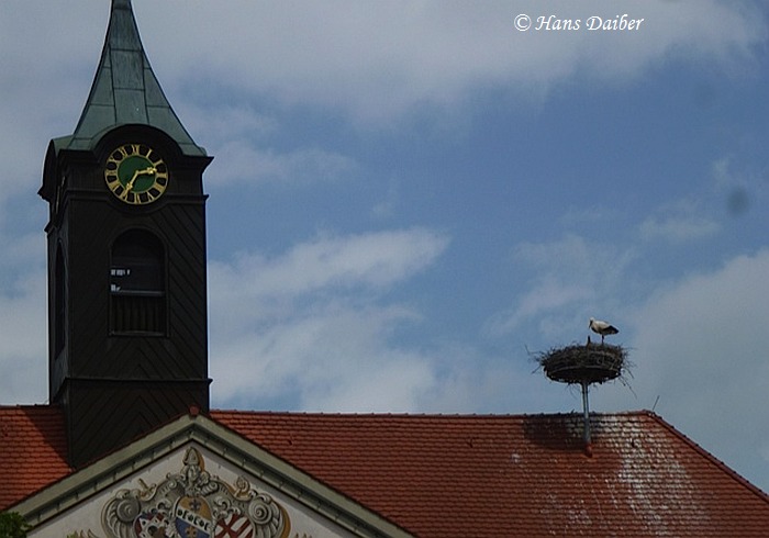 Das Storchennest befindet sich auf dem Dach des Rathauses, | ||||||||||||||||