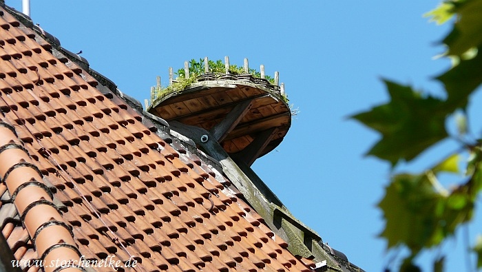 ... wo wir von der Straße aus eine alte Nisthilfe sehen konnten.
