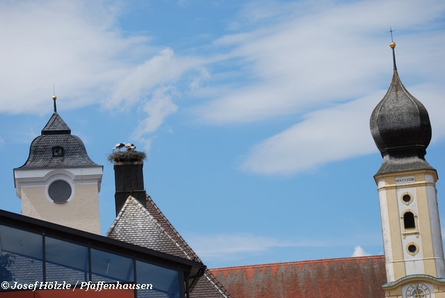 Die Störche zwischen Blindenheim und Pfarrkirche auf dem Dach des | ||||||||||||||||