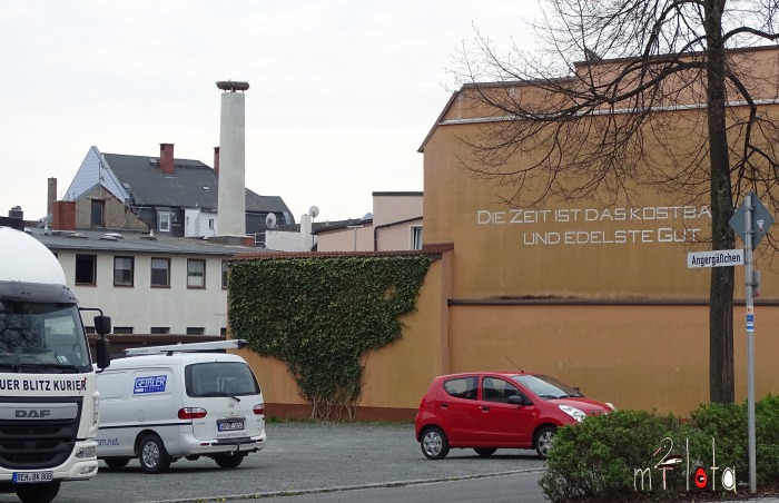 Das Storchennest befindet sich auf einem Fabrikkamin zwischen der Schulstraße | ||||||||||||||||