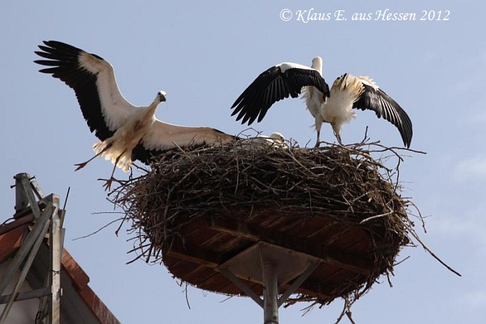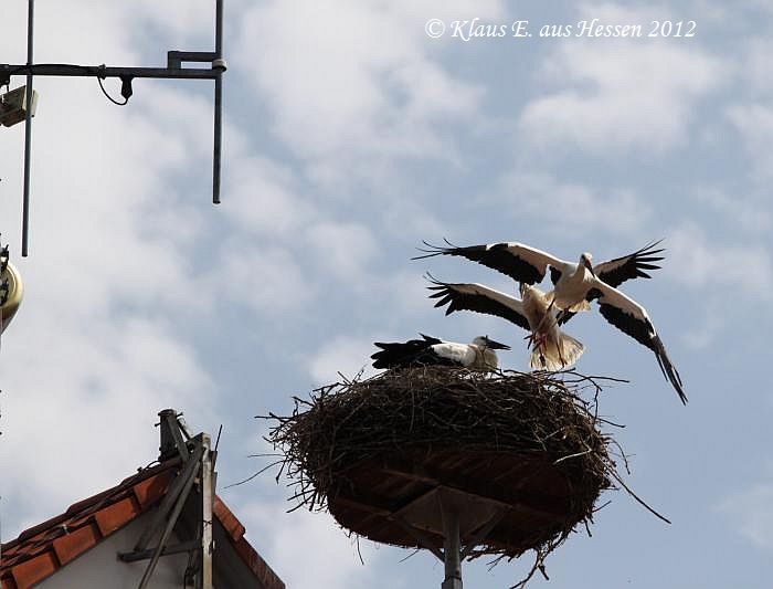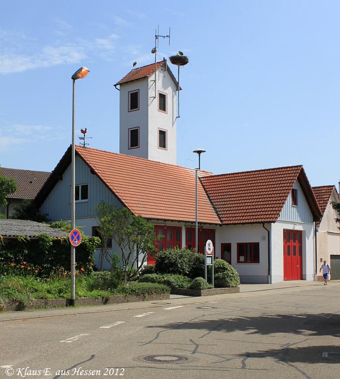 Das Storchennest befindet sich auf dem Dach des Freiwilligen Feuerwehr