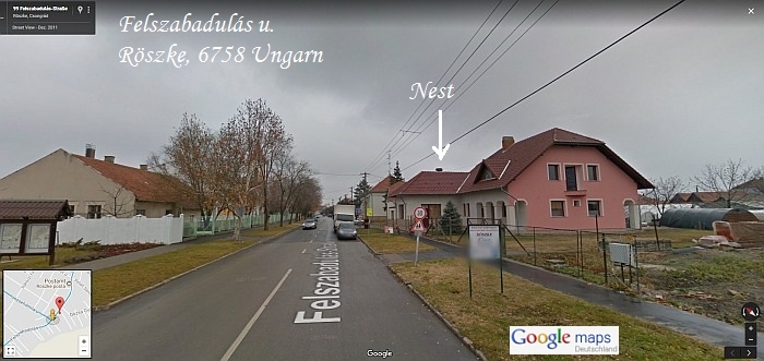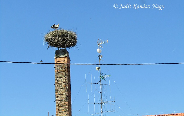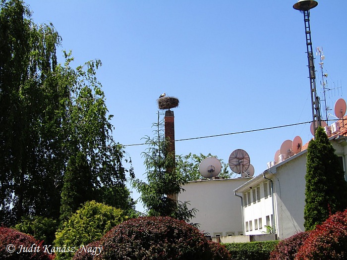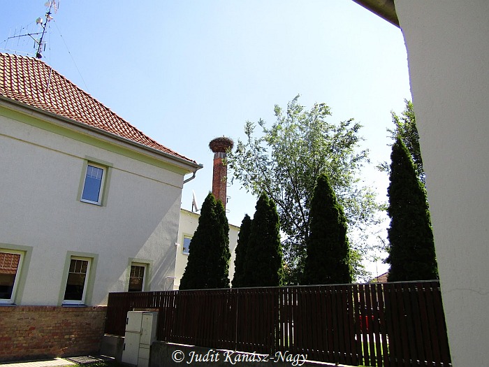 Das Nest befindet sich in der Kiss u.1 , auf dem Schornstein links neben