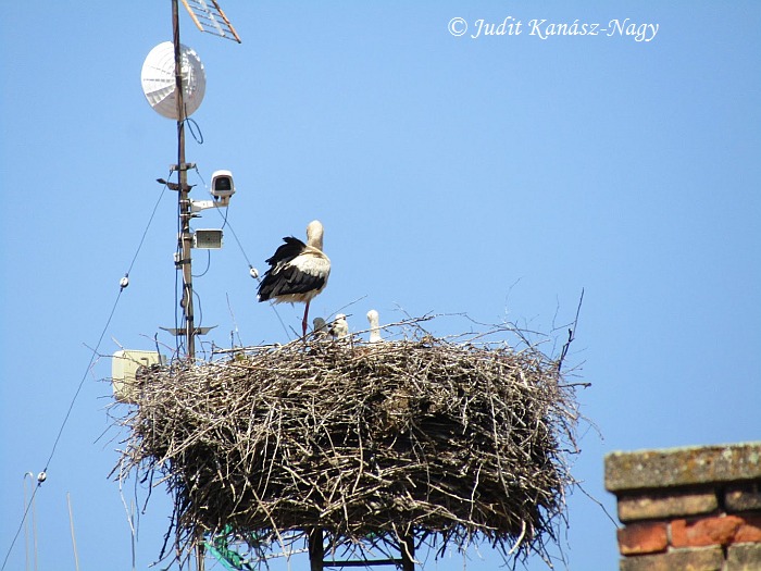 Antennenmast mit Cam rechts. Die Webcam sendet seid 2009 aktuelle Bilder vom Nest