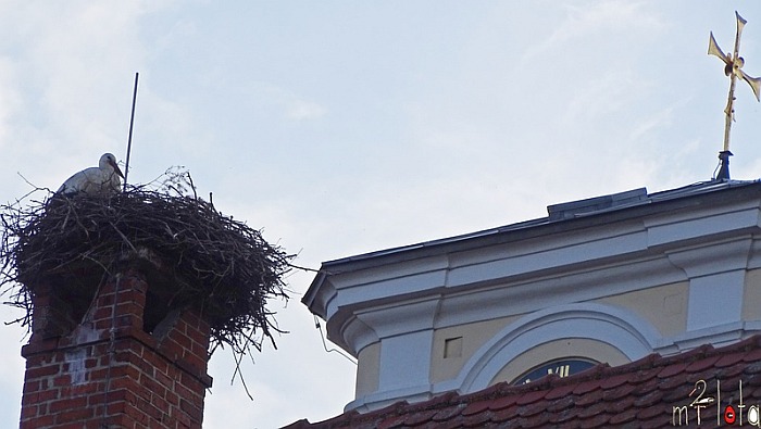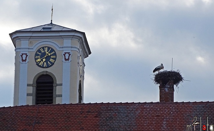 Das Storchennest befindet sich auf dem Schornstein des Klosters in Siessen. | ||||||||||||||||