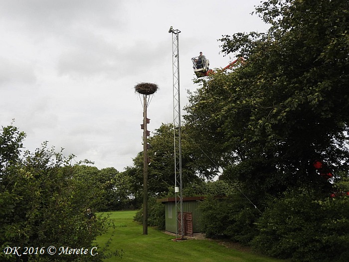 Das Storchennest befindet sich auf einem Pfahl, im Garten der Familie Appel | ||||||||||||||||