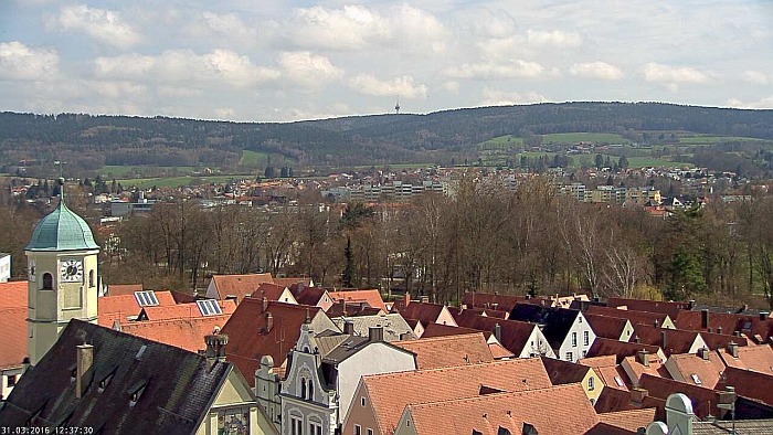Webcambild vom Dach des Alten Rathauses mit Storchennest und Blick über Weiden. | ||||||||||||||||