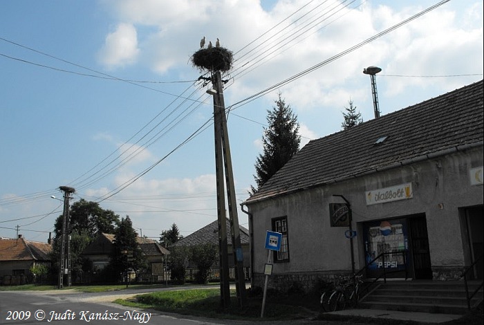 Das Storchennest von *Léna und Zala*befindet sich auf einem Mast,